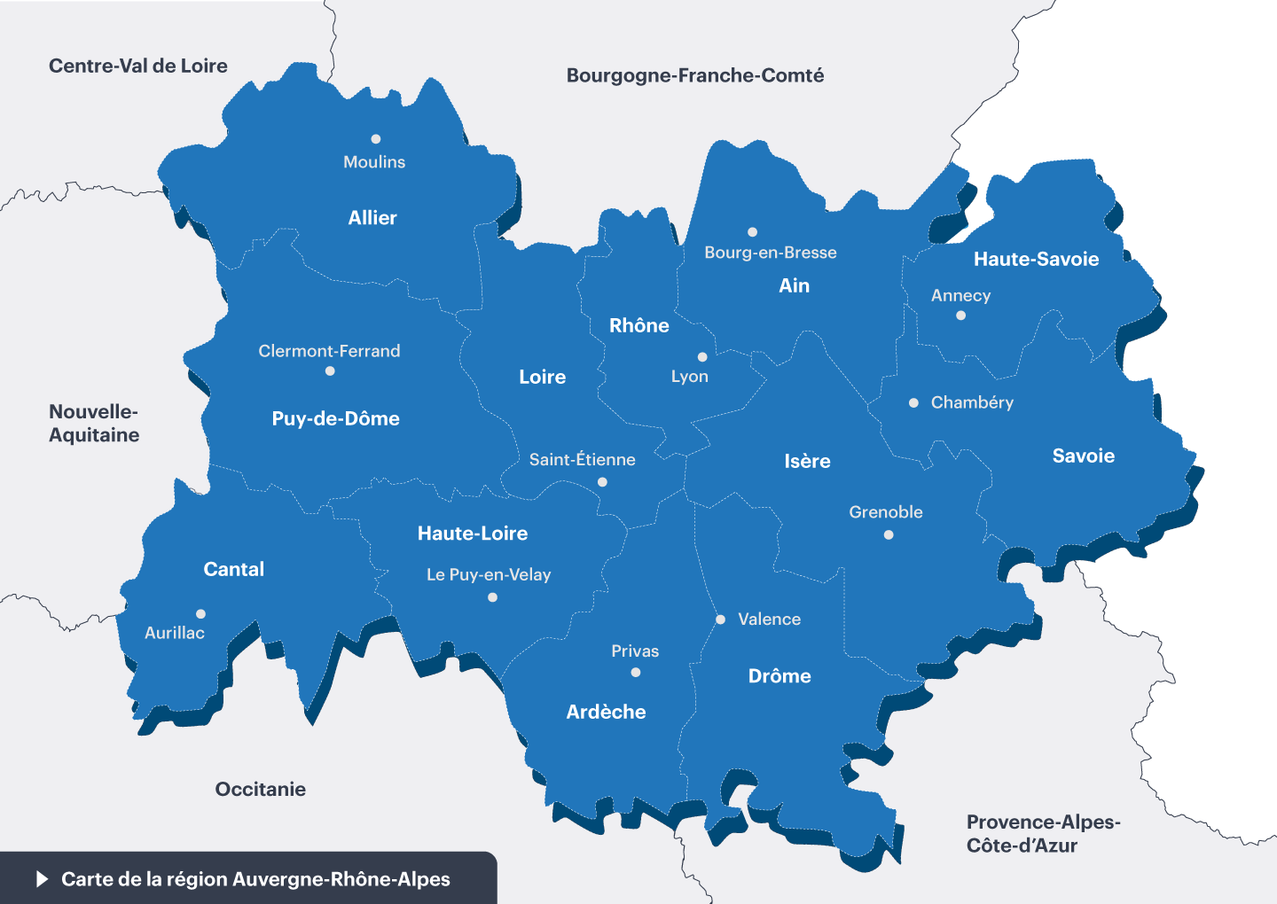 Parce que la procédure contentieuse administrative est dématérialisée et principalement écrite, nous pouvons intervenir sur tout le territoire français (métropole et outre-mer), cependant nous privilégions les dossiers du ressort de la Cour Administrative d’Appel de Lyon, soit :